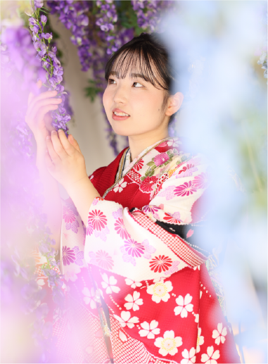 振袖を着たお嬢様を撮り慣れた経験豊富なプロのカメラマンによる撮影ができます。